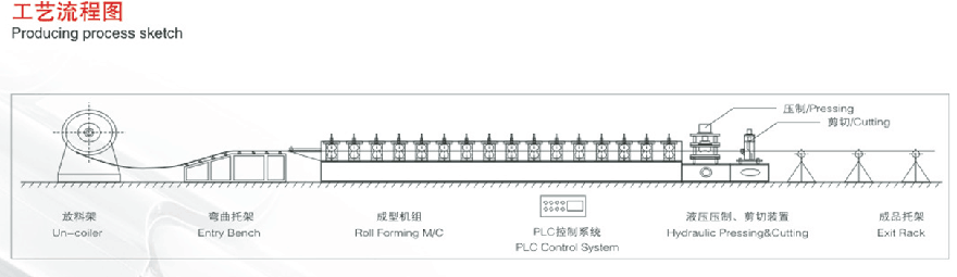 彩鋼琉璃瓦設(shè)備主要由放料機(jī)、進(jìn)料導(dǎo)入平臺、成型主機(jī)、沖模壓型裝置、成型剪切裝置、液壓站、電腦控制系統(tǒng)、成品托架等幾部分組成。