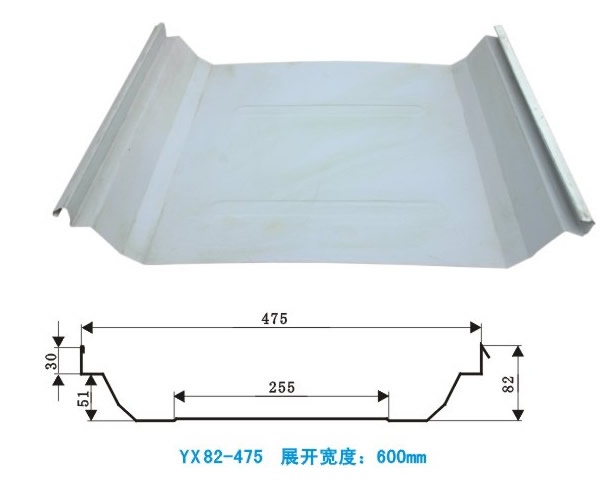 經(jīng)輥軋成型的單層壓型板屬咬合式屋面板具有波峰高、 強度大 、無螺釘鎖邊咬口安裝, 搭接安裝安全可靠, 防水抗臺防暴性能強等特點,